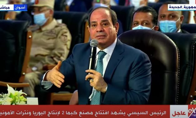 ASWAN, Upper Egypt – 28 December 2021: President Abdel Fattah El Sisi on Tuesday witnessed the inauguration of new expansion works of ammonia nitrate – urea plant in Kima, Aswan as part of the national projects inaugurated in Upper Egypt under the “Upper Egypt Week”.