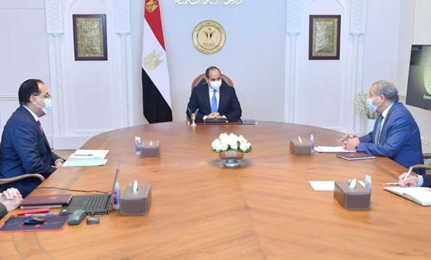 President Abdel Fattah El-Sisi met on Sunday with Prime Minister Dr. Moustafa Madbouly, Minister of Supply and Internal Trade Dr. Aly Al Moselhy and Head of the Armed Forces Engineering Authority Major General Ihab El-Far, to review the status of strategic food commodities and followed up on their availability and prices, as well as ongoing preparations for the holy month of Ramadan, said Presidential Spokesperson Bassam Rady in a statement.