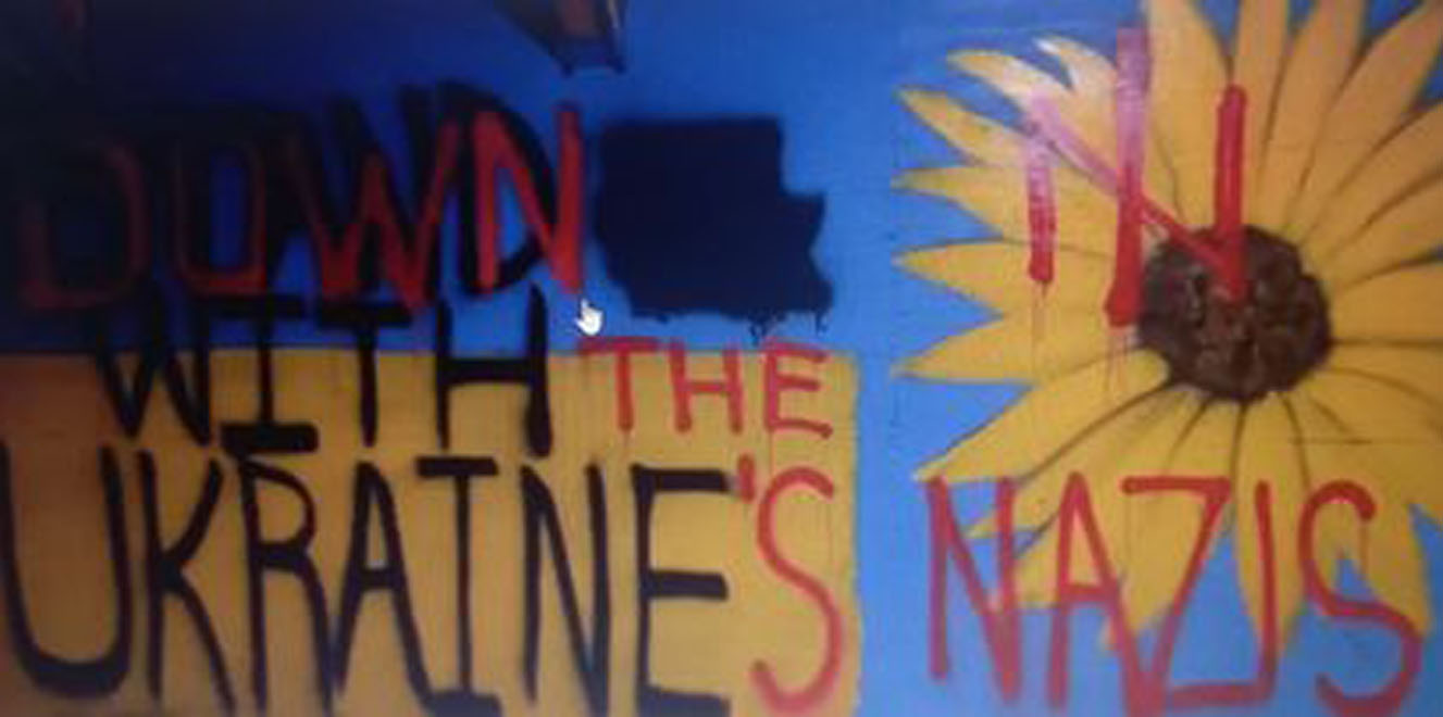 ولكن يبدو أن هناك البعض من الكنديين ممن لا يروق لهم التأييد المطلق لأوكرانيا، بل و يتعاطفون مع الجانب الروسي، فيما أعلن بوتين من أهداف هجومه المسلح على أوكرانيا، وإن كان هؤلاء الكنديين المتعاطفين مع روسيا هم قلة، ولكن لهم حضور، بدأ يظهر أثره، ولو على الجدران؛ حيث تحقق الشرطة الكندية الأن بشأن مخطوطات على جدران بريتش كولومبيا، تعبر عن الدعم لروسيا في أهافها للهجوم على أوكرانيا، والتي تحدث عنها الرئيس الروسي بوتين؛ حيث صرح بأنه لابد من الدخول إلى أوكرانيا للتخلص من النازية، و نزع السلاح من أوكرانيا.