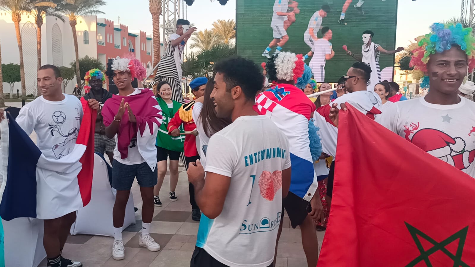 نظمت فنادق مدينة الغردقة، أجواء عالمية لعملائها من السياح الأوروبيين، تزامنا مع انطلاق مباراة ختام كأس العالم بين فرنسا والأرجنتين، حيث رفعت أعلام المنتخبين فى أجواء عالمية داخل الفنادق المختلفة بالغردقة.