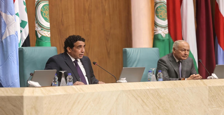 وطرح المنفي في كلمة خلال لقائه مع الأمين العام لجامعة الدول العربية أحمد أبو الغيط والمندوبين الدائمين للدول العربية بمقر الجامعة، رؤية المجلس الرئاسي لحل الأزمة الليبية في إطار اختصاصاته الدستورية ووفق أحكام خارطة الطريق وحث الجامعة على تحمل مسؤولياتها لدعم مقاربة المجلس الرئاسي بالخصوص، تفاعلاً مع دعم بعثة الأمم المتحدة.