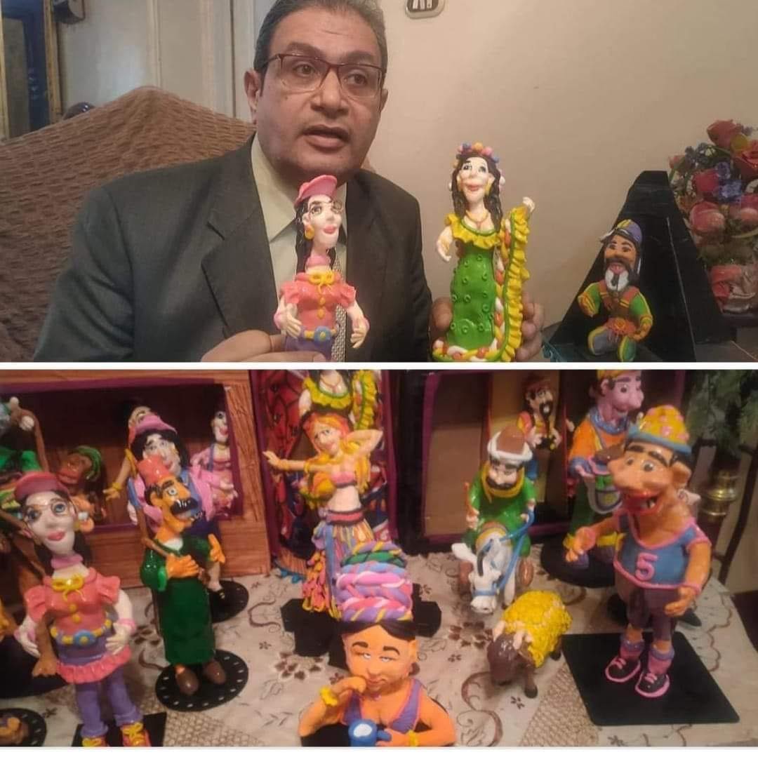 ويقول الفنان ثروت مرتضى موجه التربية الفنية بالتربية والتعليم، إنه عمل كرسام كاريكاتير لأكثر من 30 عاما، يقدم فيها الرسومات على الورق بجانب عمله كموجه، واكتشف مؤخر موهبته الجديده وهى تحويل الرسوم الكاريكاتيرية إلى شخصيات مجسمة باستخدام الصلصال.