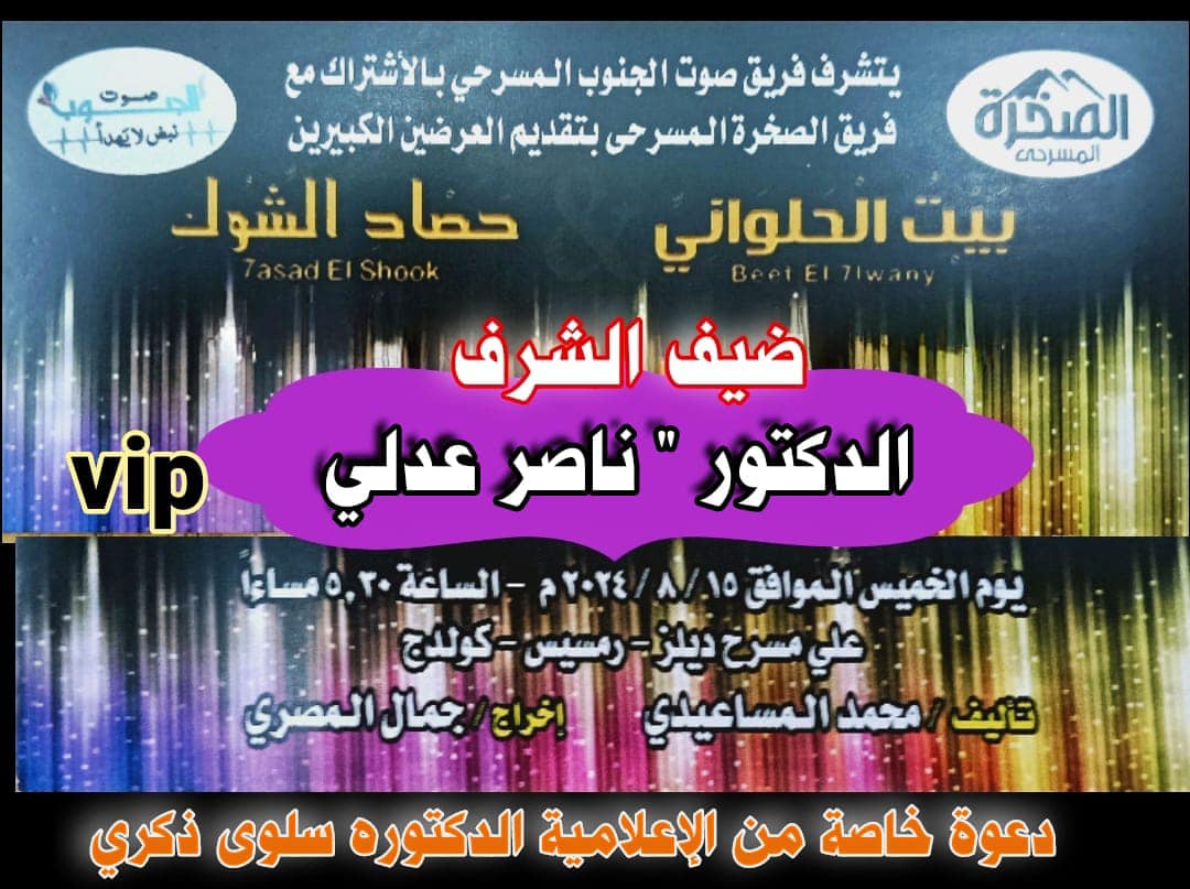 قام فريق الصخرة وفريق صت الجنوب بدعوة المفكر الاقتصادى ناصر عدلى كضيف شرف للعرض المسرحى