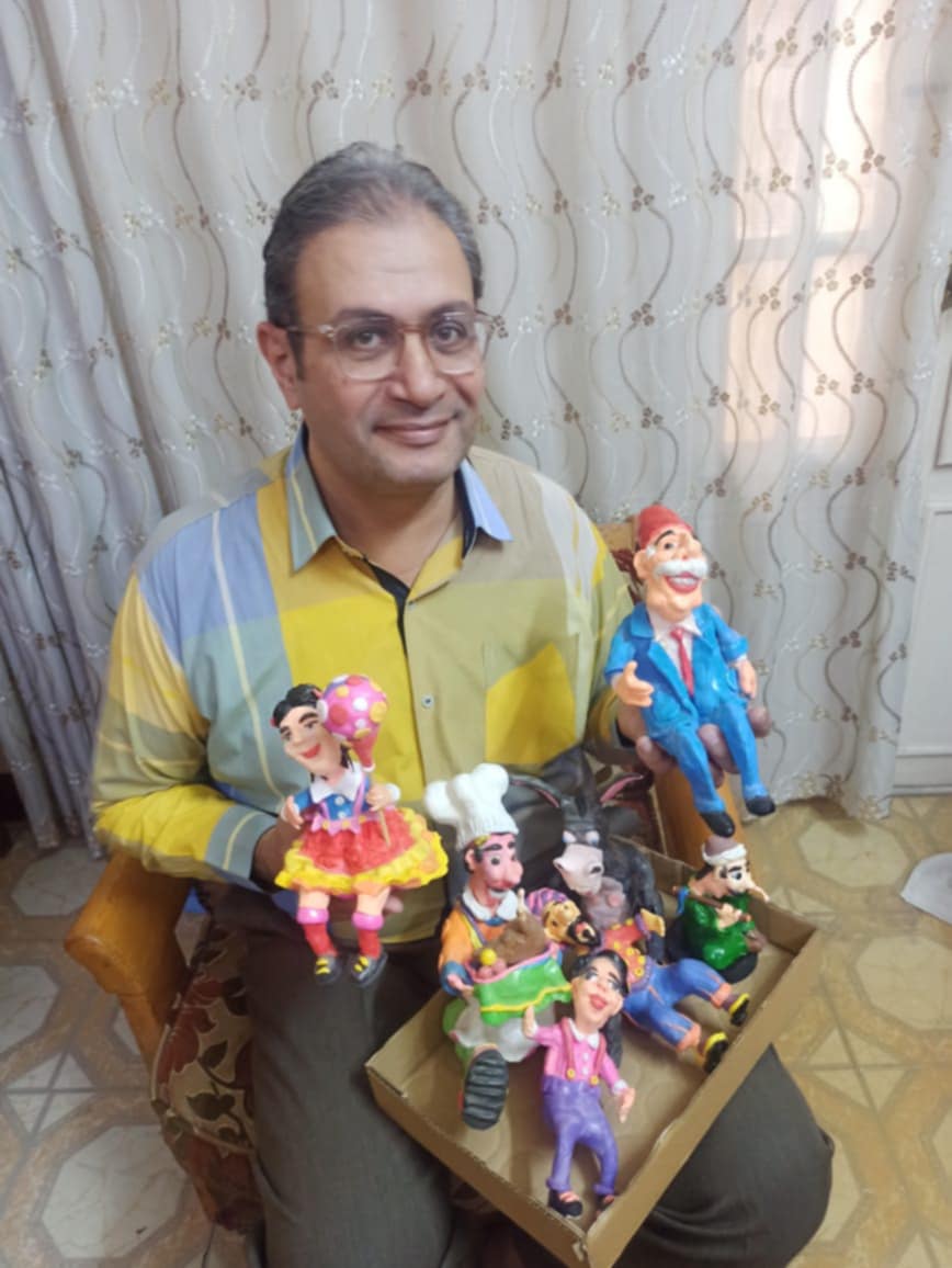ثروت مرتضى ينطلق دائمًا من الفكرة الساخرة التي تميز الكاريكاتير، لكنه لا يكتفي بالرسم. يبدأ من الخطوط المبالغ فيها على الورق، ثم يحوّلها إلى مجسم ملموس بخامات مثل الفوم والصلصال، مطليًّا بعناية ليحافظ على روح الدعابة المصرية، مع إضافة واقعية تجعل المشاهد يشعر وكأن الشخصية أمامه تتحرك.