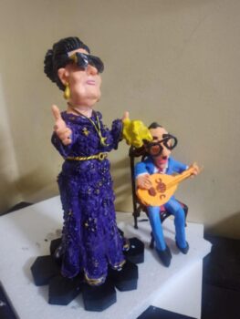 مجسمات مطربين كبار مثل عبد الحليم حافظ، مع إبراز ملامحهم في قالب ساخر يثير ابتسامة المشاهد.