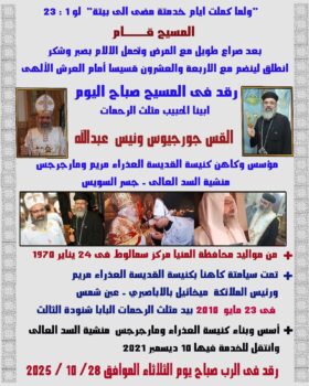 ربنا يعزى الأسره ويعزى شعب الكنيسة