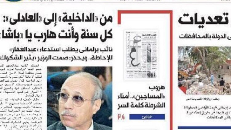 The publication said in a statement following the seizure, that the state-owned Al-Ahram printing press refused to print Sunday’s edition of the paper in compliance with a request from, what they referred to as, “certain entities,” demanding the removal of a front-page report on the delay in uncovering Adly’s location. The case of the former minister’s getaway has prohibited the execution of a court sentence issued earlier this year.