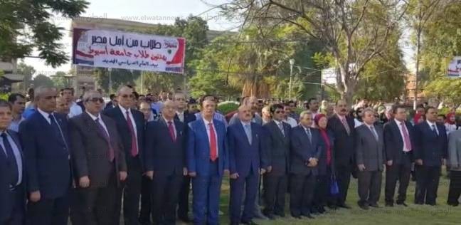 شارك الدكتور أحمد عبده جعيص رئيس جامعة أسيوط، طلاب الجامعة تحية العلم، وذلك بحضور أساتذة الجامعة بالكليات المختلفة، وذلك بجوار مقر كلية فنون جميلة بجوار بوابة الإبراهيمية.