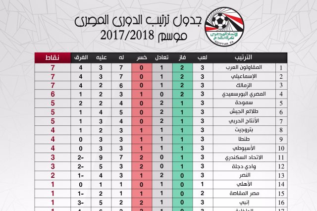 تعرف على : ترتيب أندية الدورى المصرى قبل الجولة الرابعة