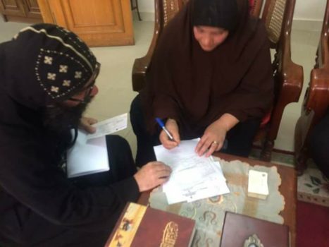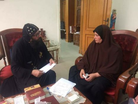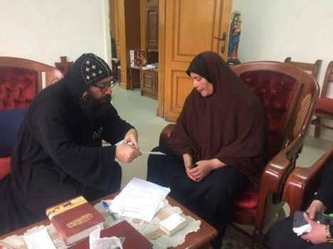 أستقبل نيافة الأنبا يوليوس الأسقف العام لكنائس مصر القديمة وأسقفية الخدمات اليوم السيدة فتحية محمد زوجة شهيد الوطن رضا عبد الرحمن أسماعيل، أمين الشرطة الذي استشهد أثناء تواجده ضمن حراسة كنيسة الشهيد مارمينا بحلوان أثناء الهجوم الإرهابي الذي تعرضت له الكنيسة أواخر ديسمبر من العام الماضي، تاركًا أسرة مكونة من الزوجة وسبعة أولاد.