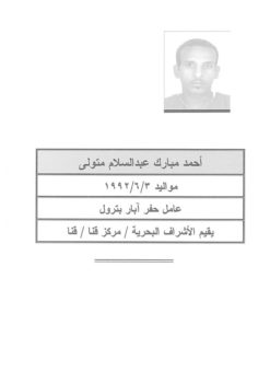 – أحمد مبارك عبدالسلام متولى، مواليد 1992 يقيم بقنا.