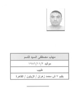 – مهاب مصطفى السيد قاسم، مواليد 1986 يقيم بالزيتون بالقاهرة.