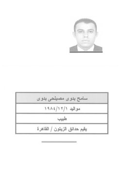 – سامح بدوى مصيلحى بدوى، مواليد 1984 يقيم بحدائق الزيتون بالقاهرة.