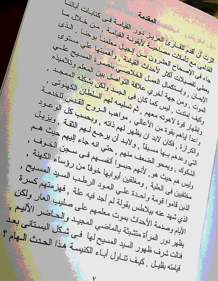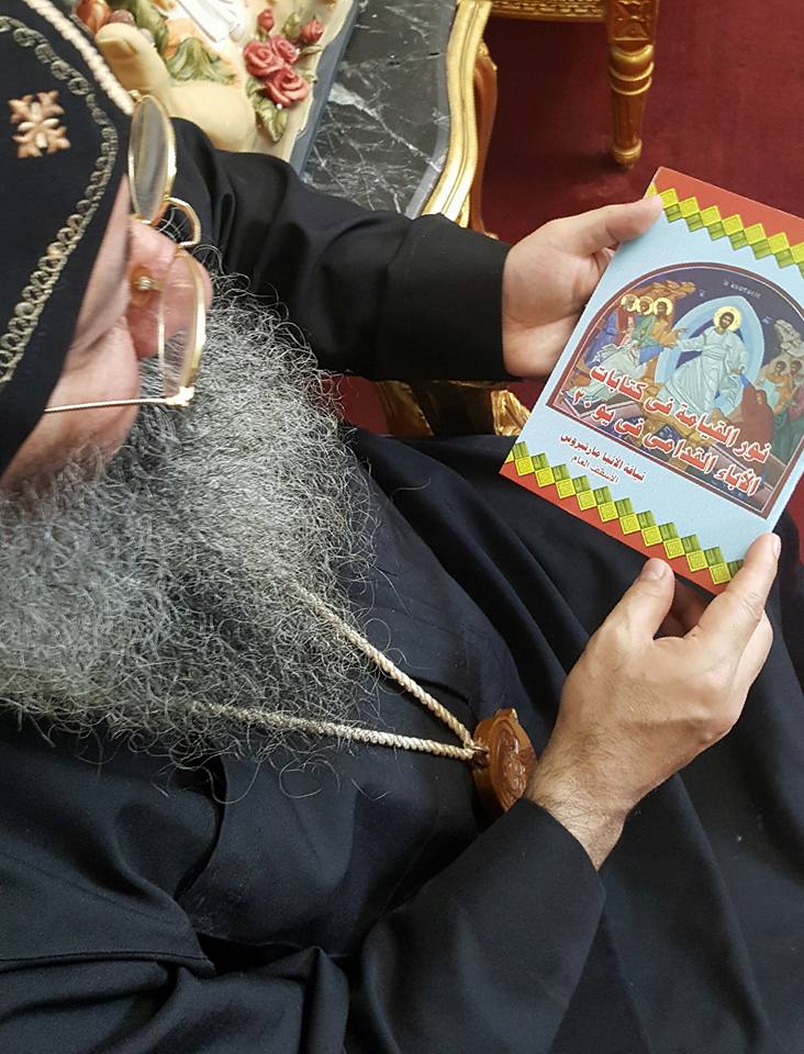 لم أستطع أن أعلن عن كتاب العيد لأن ألام الأحداث أصابتنا ولكن نور القيامة هزم هذه الألام .. وأعلن عن الكتاب “نور القيامة في كتابات الأباء القدامي في يو 20” مع شروحات لأيقونات القيامة .. جاء في المقدمة .. “فكان لابد ان يظهر لهم ذاته , وبحسب كل الوعود التي وعدهم بها مسبقاً , ولابد أن يرجع لهم الثقة , ويزيل الشكوك , ويمحو الضعف منهم , حتي انه جاء إليهم حيث هم وليس هم حيث هو, لأنهم حبسوا أنفسهم فى سجن الخوف , مختفيين فى العلية , ومغلقين أبوابها خوفاً من رؤساء الكهنة , الذين قاموا قومة واحدة علي العود الرطب السيد المسيح , الذي شهد عنه بيلاطس بقولة لم أجد فيه علة , فهزمتهم كسرة الأيام وصدمة الأحداث …”