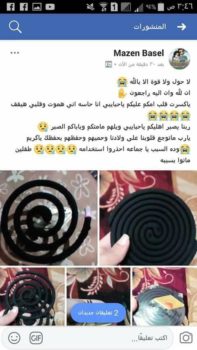 وذكرت «أسماء» على صفحتها بـ«فيس بوك»: «أنا من سكان الأرياف، الساعة 3 بليل كنت قاعدة وفي ناموس في الصاله وعشان كبيره وواسعة مهما ارش مبيد مابيعملش حاجة مع الناموس، قومت ولعت بخور الناموس، وشغلته نص ساعة بالضبط وبعدها اقسم بالله شوفت الموت بعيني».