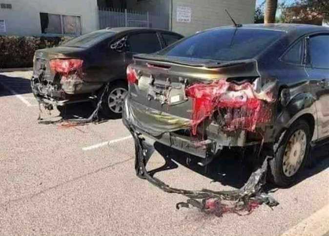 لكن السيارات «الذائبة» لم تتعرض لدرجات حرارة مرتفعة، كما أنها لا تستقر داخل الأراضي العربية، بل يرجع الذوبان إلى حادث وقع في مدينة توكسون بولاية أريزونا بالولايات المتحدة الأمريكية، وذلك منذ سنوات وتحديدًا في عام 2018.