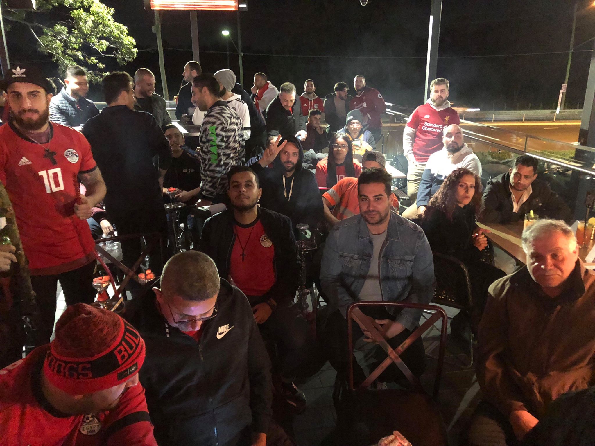 أثناء متابعة الفريق المصرى بكأس العالم توافد مئات شباب الجيل الثاني والثالث من الاستراليين من أصول فرعونية نحو احد فنادق مدينة سيدنى الاسترالية لقضاء المهرجان الرياضى الذى نظمه أحفاد الفراعنة امام الشاشات المنتشرة بارجاء النادى الملحق بالفندق لمشاهدة أولى مباريات منتخب الفراعنة بكأس العالم امام منتخب الأورجواي وذلك فى تمام العاشرة مساء بالتوقيت المحلى لمدينة سيدنى بالتزامن مع بداية عطلة نهاية الأسبوع وعيد الفطر المبارك . ولم تؤثر شدة برودة الطقس على الحضور بل جعلت الشباب يشجعون المنتخب بحرارة على أنغام الموسيقى حاملين الاعلام المصرية مما اعطاهم احساس والشعور بالدفئ . هذا وقد حرص الكاتب الصحفي أشرف حلمى على التواجد بين الشباب الذى أطلق عليه أسم ( الجيبو أوزى ) وسفراء مصر باستراليا حيث ان كلمة جيبو تعنى مصرى وأوزى أسترالى كما هو متعارف بين الشعب الأسترالي وأشاد حلمى بالمجهود الرائع والظهور المشرف للشباب وأعضاء الجالية المصرية الذين حضروا مساء اليوم لمتابعة فريق الفراعنة قبل ساعتين من بدأ المباراة ولم يبخلوا بدعم الفريق بشرائهم فانلة المنتخب بمبلغ ١٢٠ دولار أسترالياً رغم برودة الطقس بصرف النظر عن نتيجة المباراة و ان الأجواء المصرية التى عمت الفندق أعطت إحساس لنزلائه كأنهم باحد ميادين القاهرة . ومما يذكر ان بعض الكنائس القبطية باستراليا زودت قاعاتها بشاشات تليفزيونية لرعاياها لمتابعة المباراة كما احتفلت بعض المنظمات المصرية مع ابنائها بخوض اول مباراة للفريق القومي المصرى فى كاس العالم .