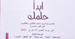 بدأت الهيئة العامة لقصور الثقافة تنفيذ المرحلة الثانية من مشروع “ابدأ حلمك” بمحافظة أسوان، والذى تنظمه الإدارة المركزية للشئون الفنية،...اقرأ المزيد